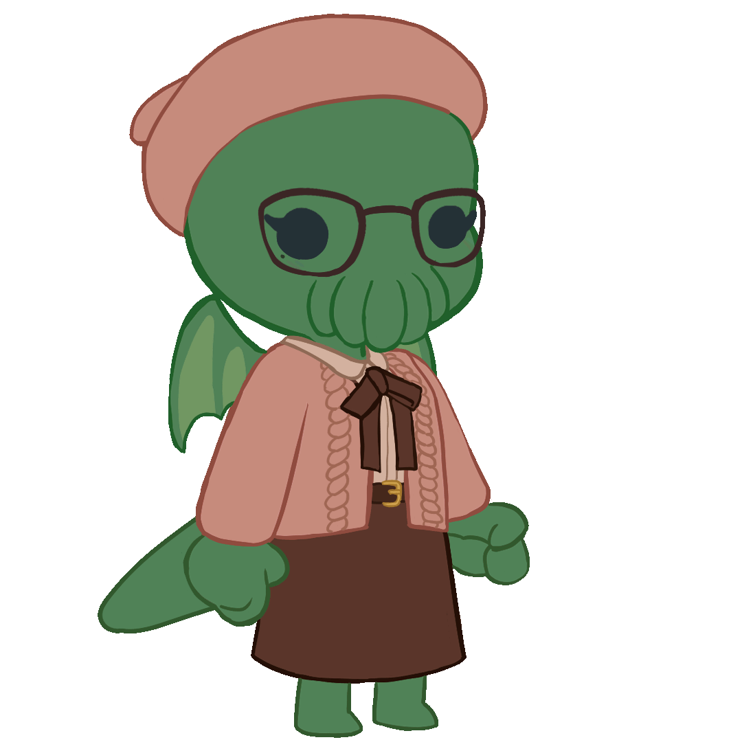 I'm Folly! I'm a streamer, a 3D artist, and I GUESS also the honorary Guard-Captain of Cthulhu's Abyssal Army.